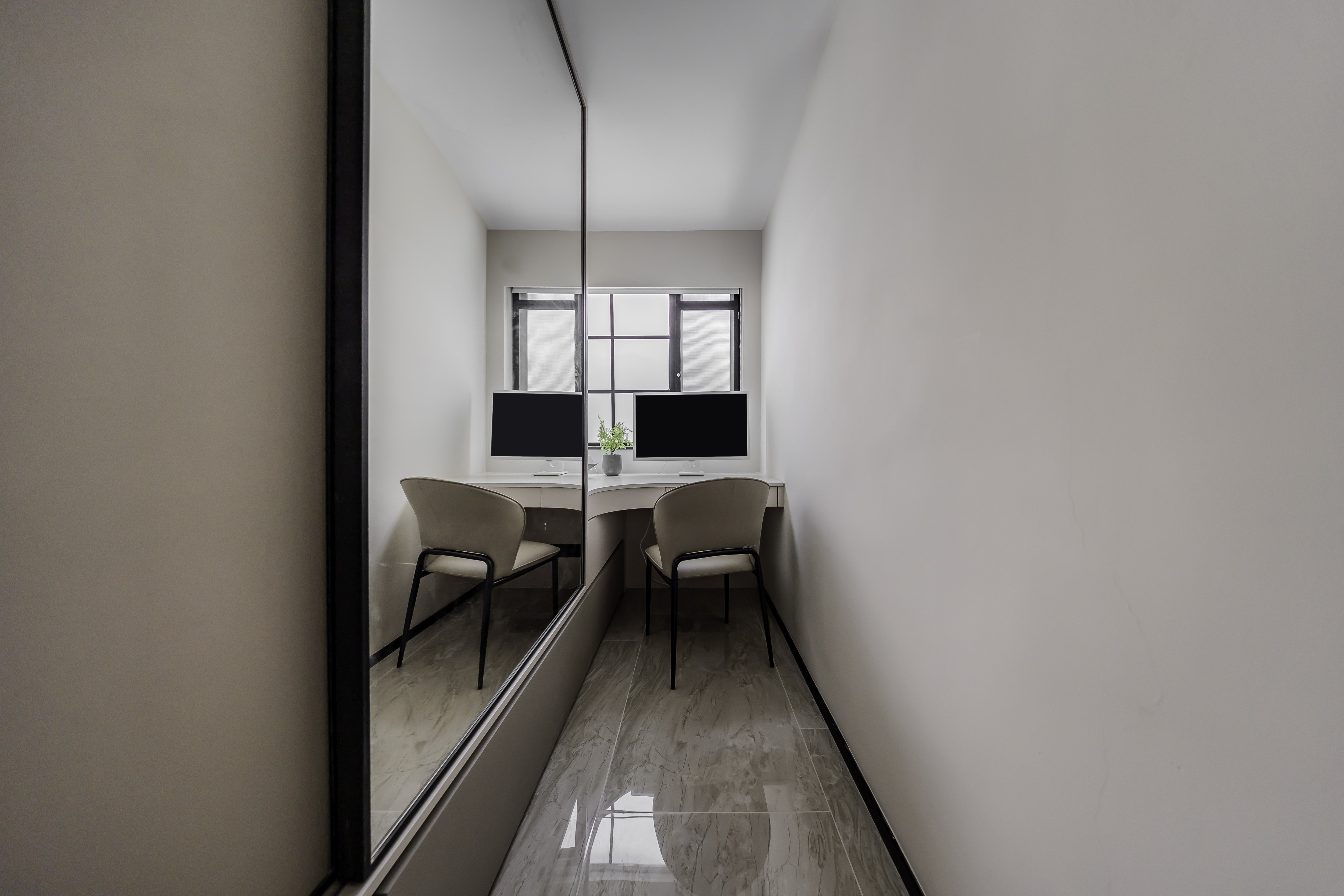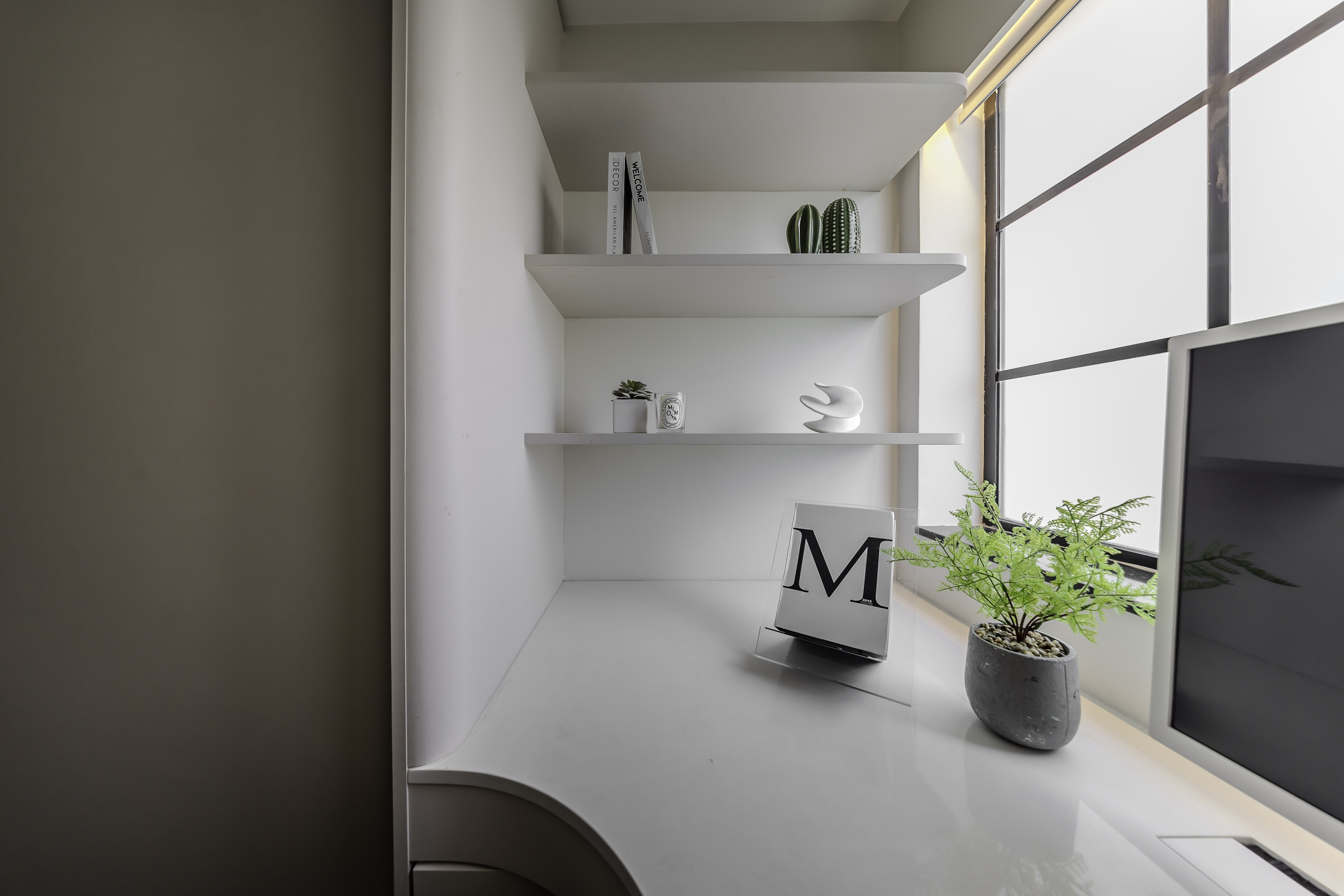 🔸 The study room doubles as a guest room. The desk serves as a workspace for the lady of the house, while the full-height cabinet beside it functions as a wardrobe. Furthermore, its base can be pulled out and transformed into a bed, easily accommodating overnight stays.