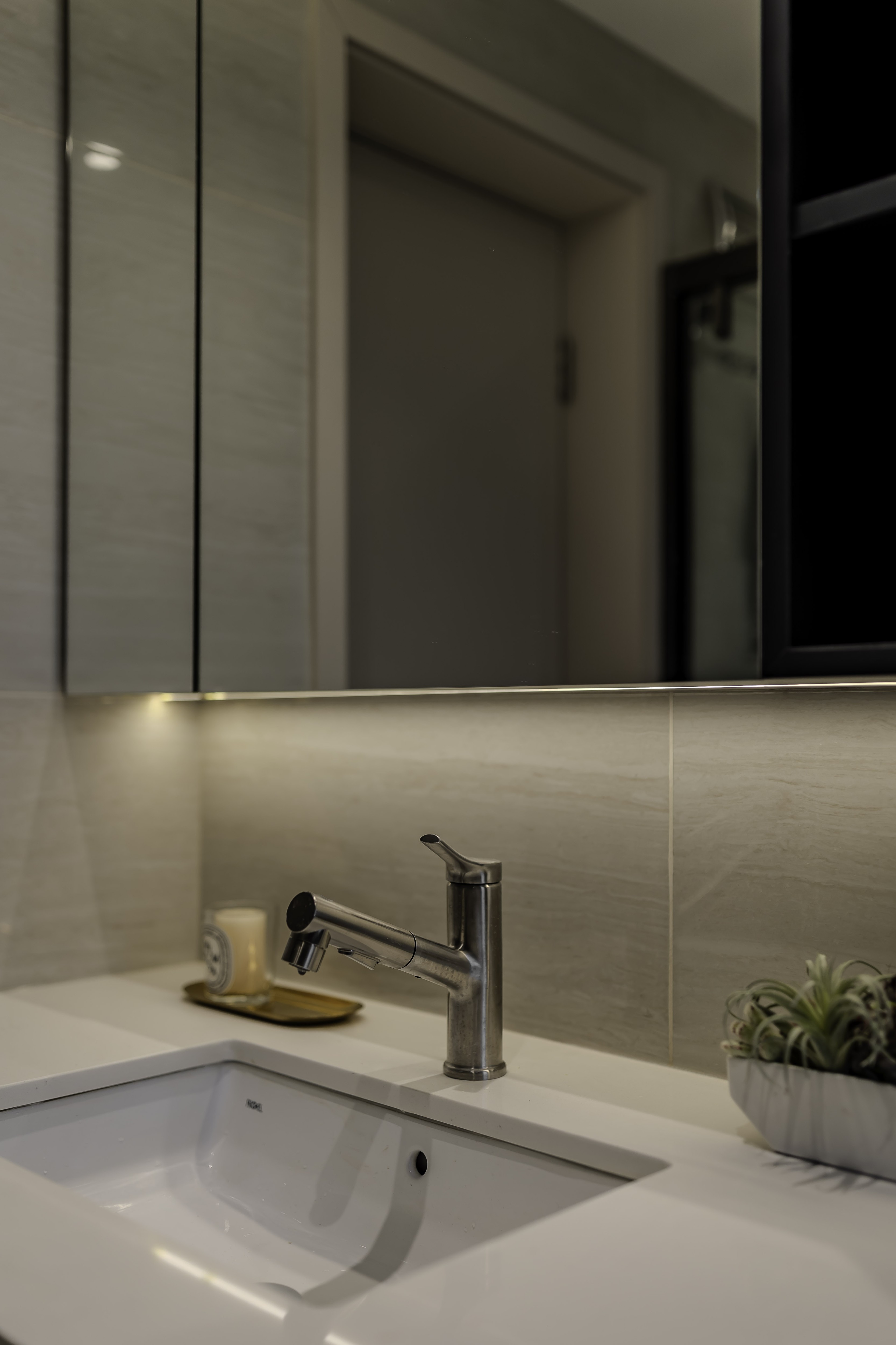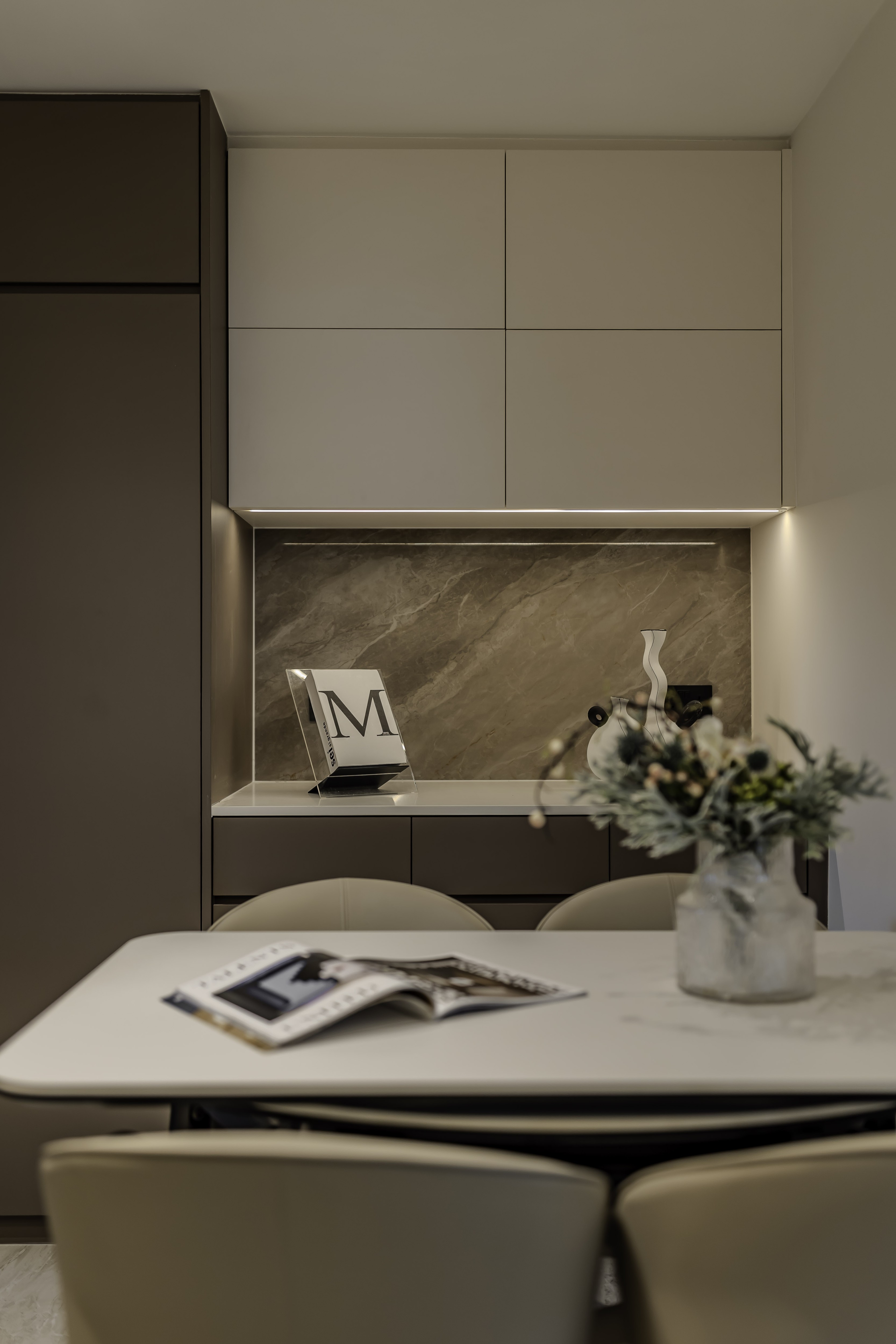 🔸 Considering the daughter's sociable nature and frequent visits from friends, the designer specially concealed the doors to the bedroom, study, and bathroom. These are ingeniously integrated into the dining area wall as hidden doors, significantly enhancing home privacy while maintaining the visual purity of the space.