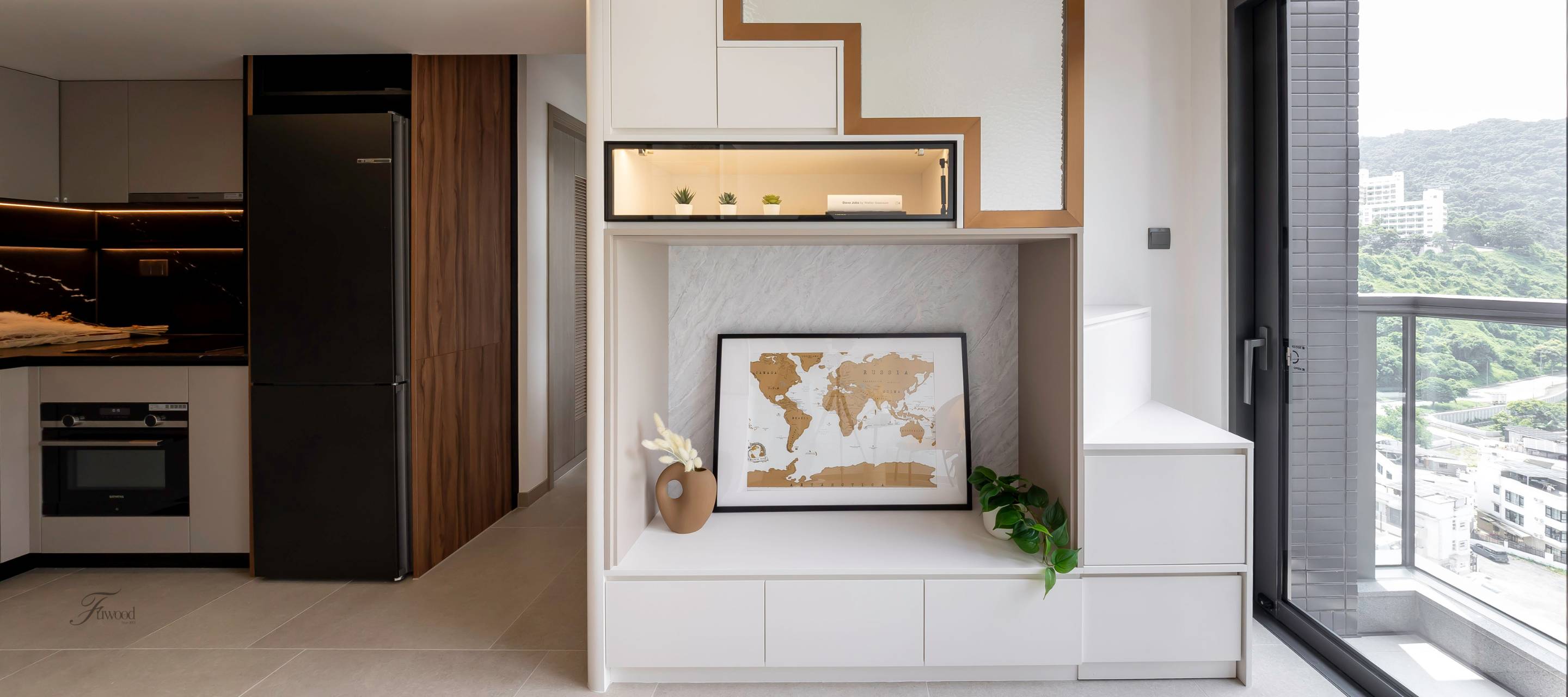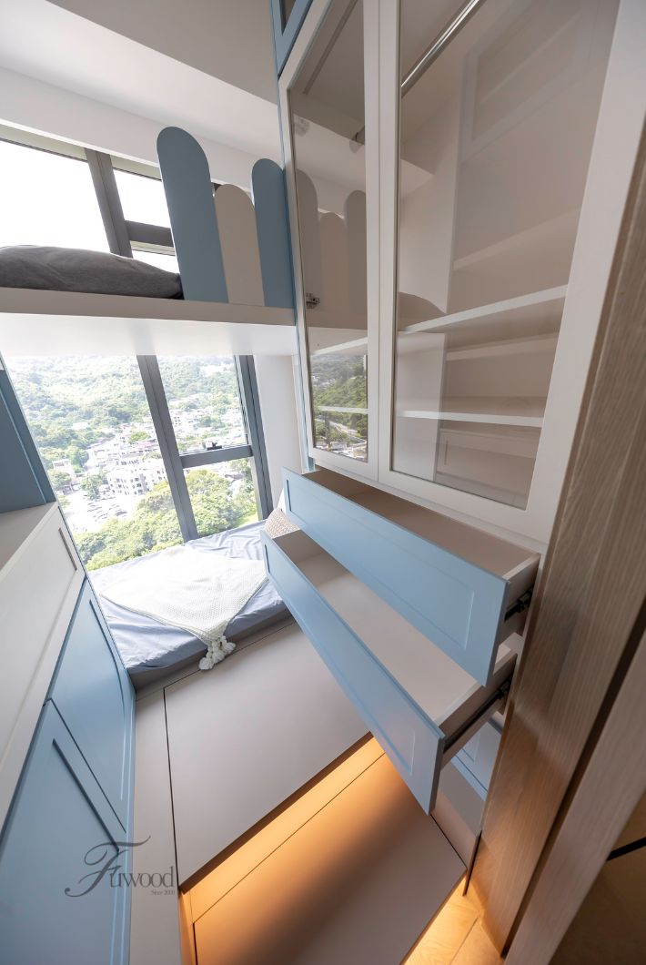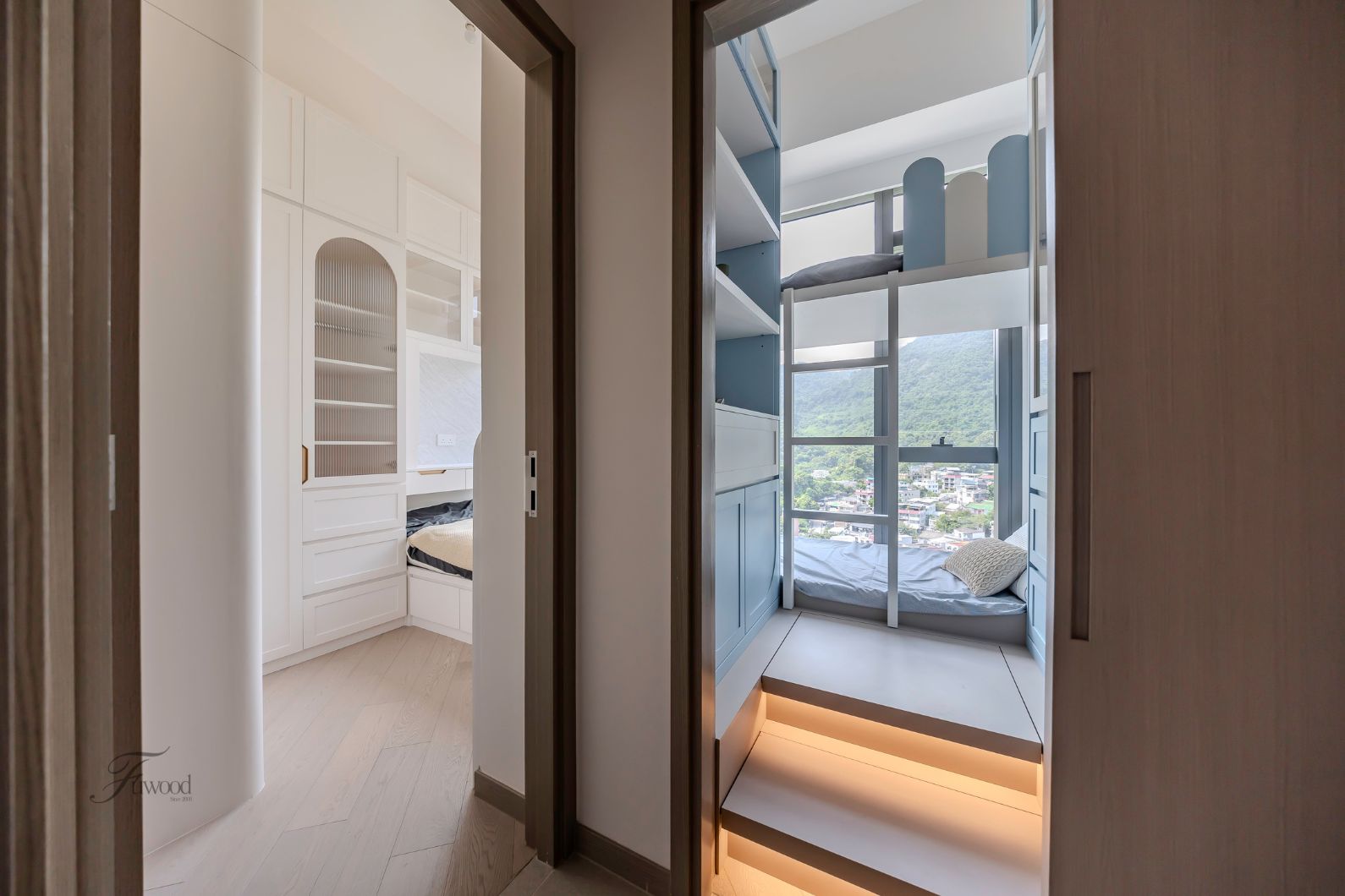 On the environmental front, the entire home uses E0-grade healthy materials, providing a low-formaldehyde environment that ensures peace of mind for a child’s upbringing. In the details, built-in LED mood lighting inside the cabinets turns everyday storage areas into small corners that cultivate a sense of beauty and ritual for children.