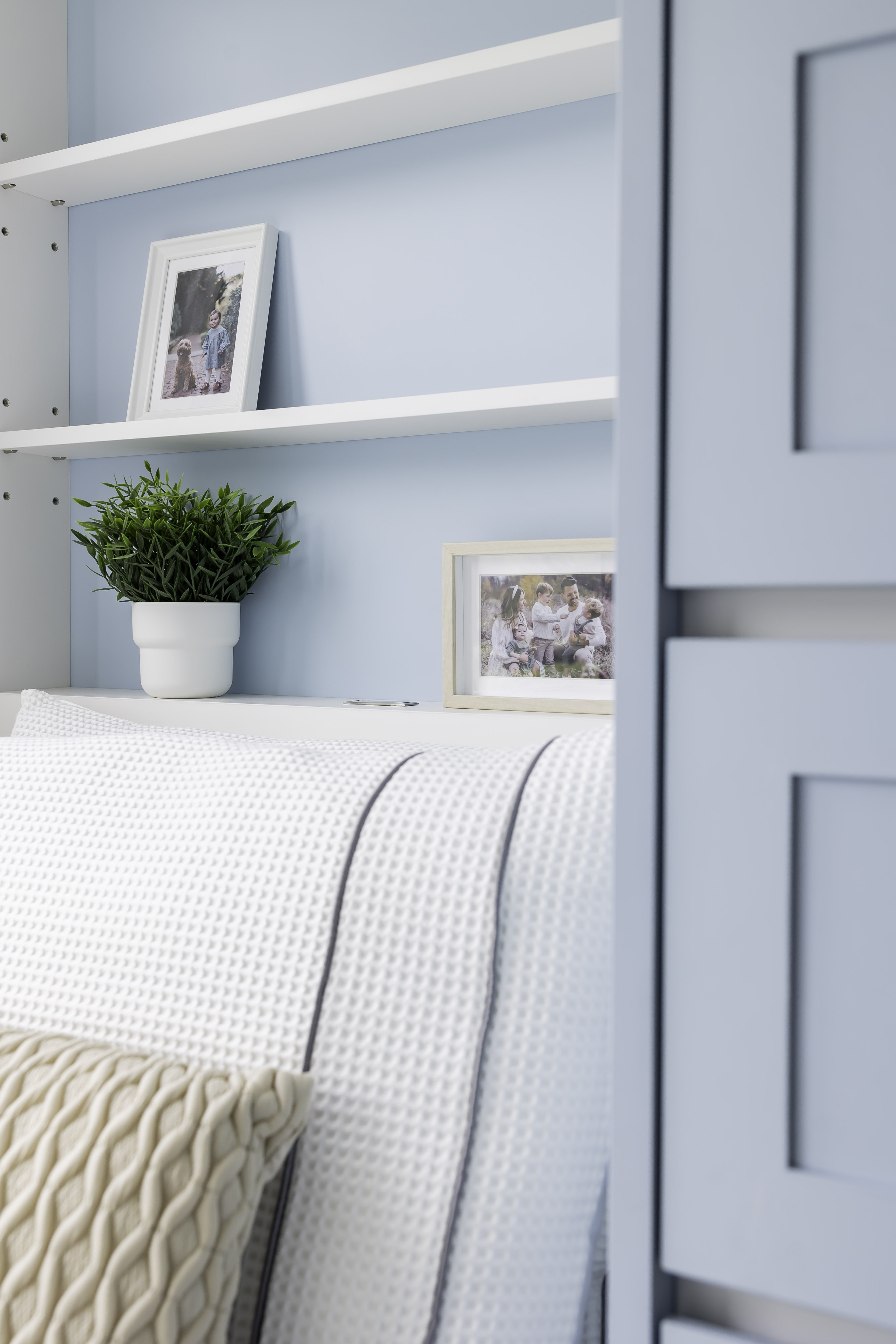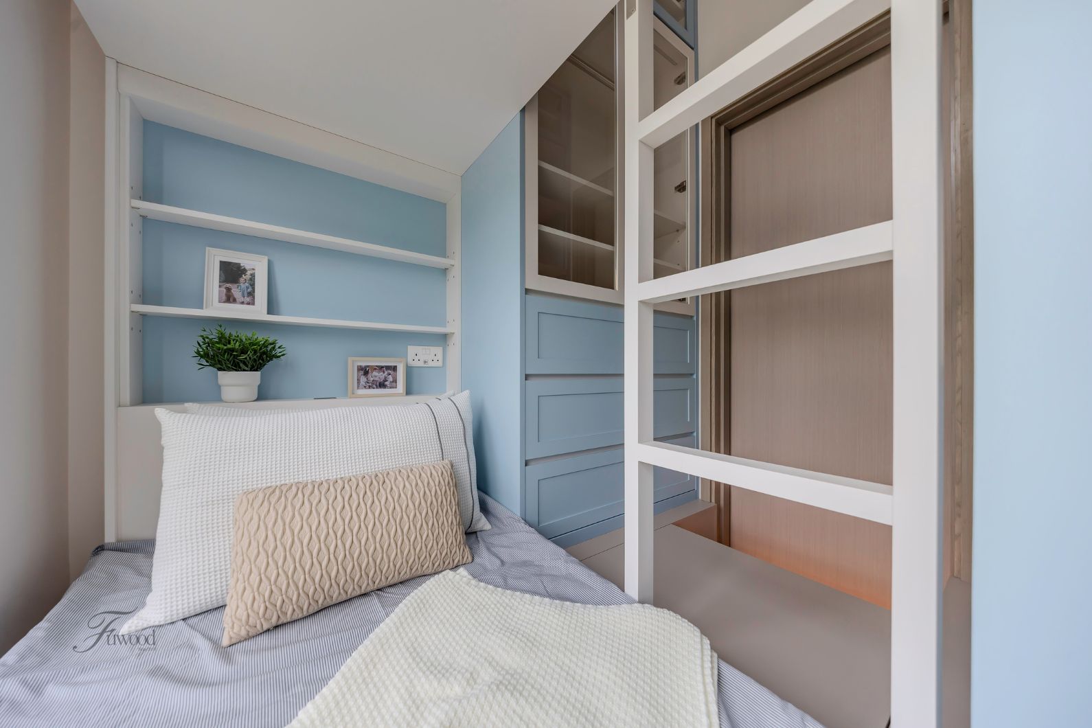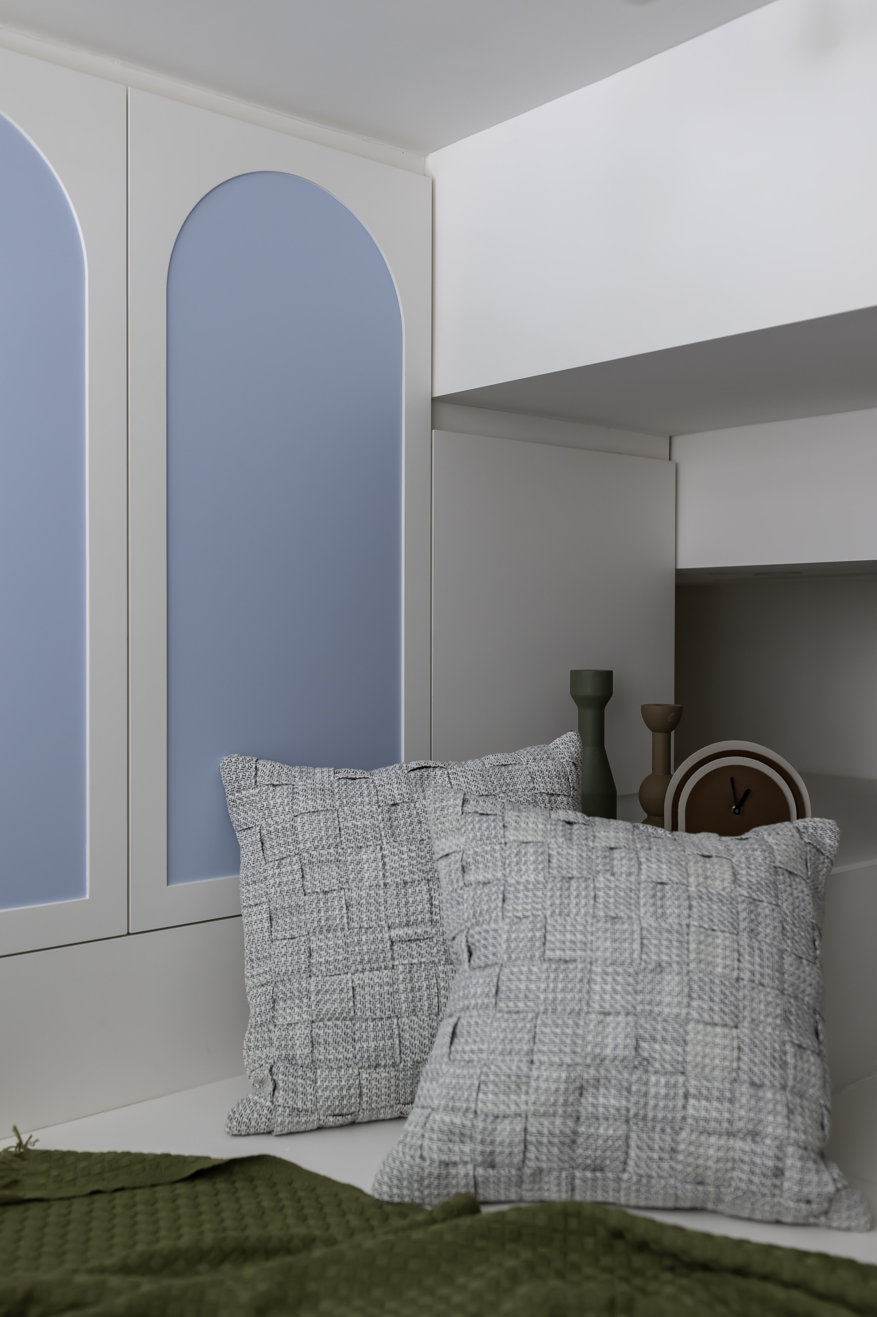 On the environmental front, the entire home uses E0-grade healthy materials, providing a low-formaldehyde environment that ensures peace of mind for a child’s upbringing. In the details, built-in LED mood lighting inside the cabinets turns everyday storage areas into small corners that cultivate a sense of beauty and ritual for children.